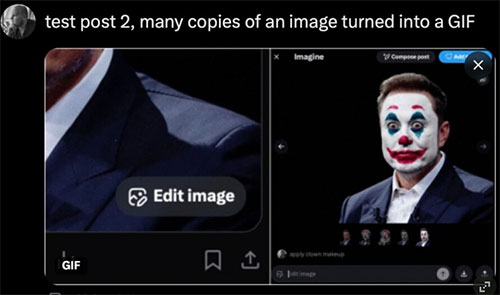 如上图所示,该按钮会打开典型的 gen-AI 菜单,其中包含提示、结果图像以及其他选项,例如创建包含修改后图像的专用帖子或用该图像回复原始帖子。